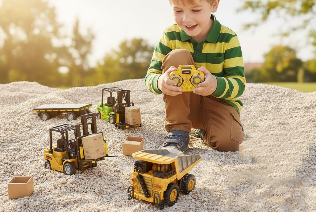 All vehicles are powered by 2.4GHz remote control technology, ensuring smooth, responsive control from up to30 meters away. With vivid colors, detailed textures, and functional moving parts, each vehicle captures the essence of real construction machinery. Whether building roads, loading cargo, or digging up treasures, these toys spark imagination and teach coordination and problem-solving skills.